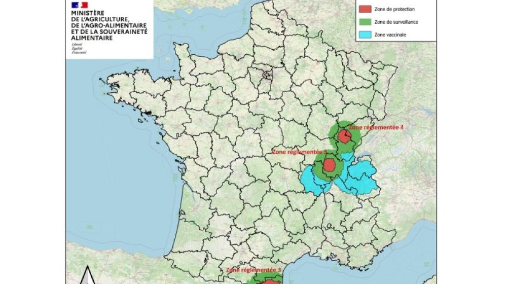 Depuis le 18 octobre 2025, le Cantal est inclus dans la nouvelle zone réglementée supplémentaire (ZRS) couvrant les régions Auvergne- Rhône-Alpes, Bourgogne-Franche-Comté et Occitanie.
