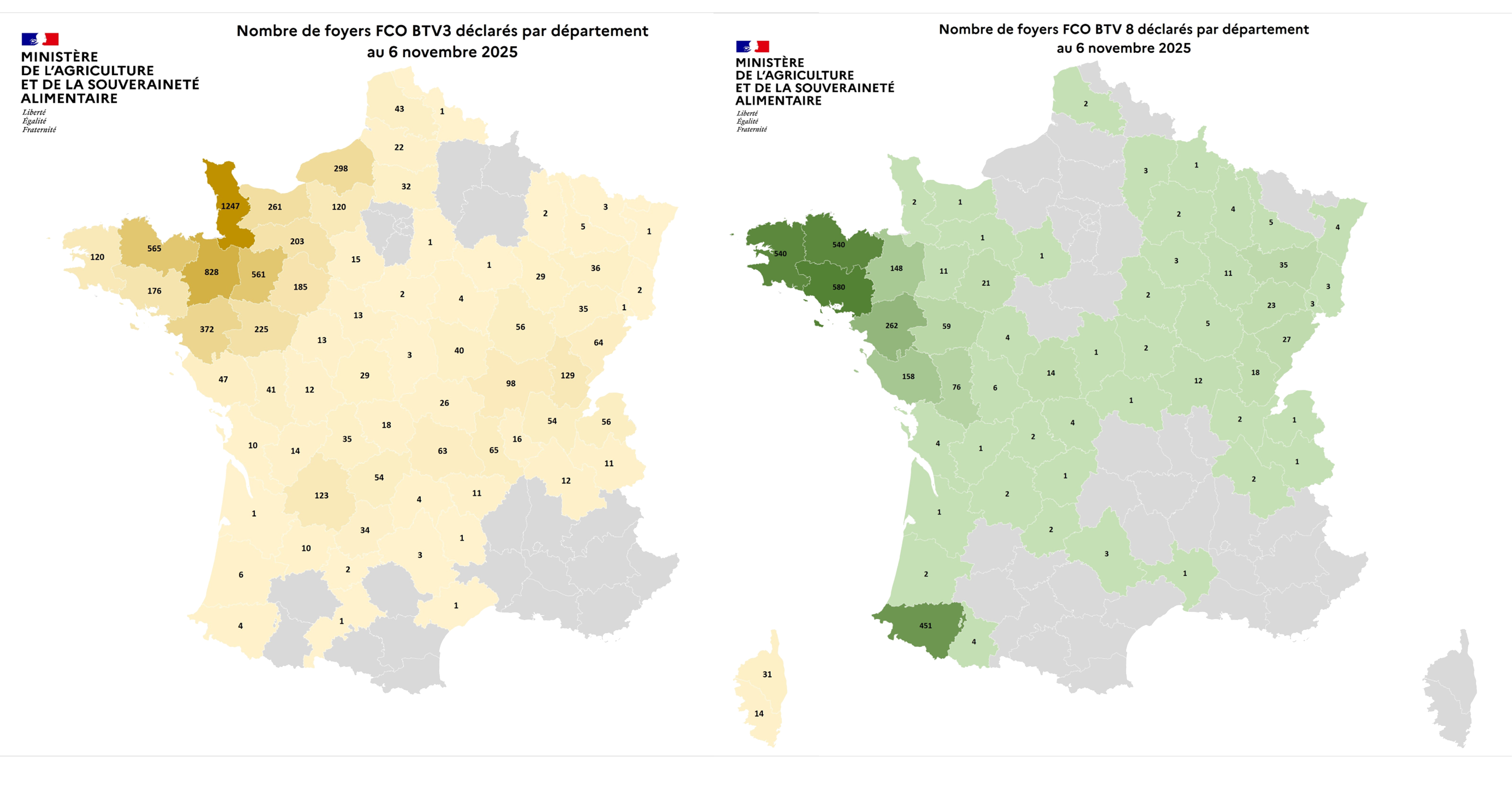 - Dernier et unique foyer confirmé le 18 septembre 2025 : la zone de protection est devenue zone de surveillance le 20 octobre dernier ;